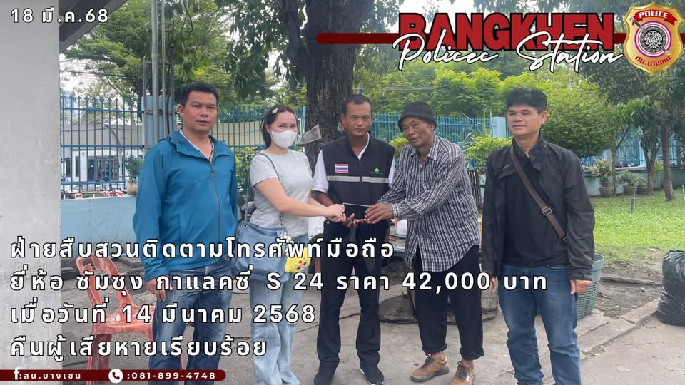 ฝ่ายสืบสวนติดตามโทรศัพท์มือถือ Samsung Galaxy S 24 มูลค่า 42,000 บาท คืนผู้เสียหาย
