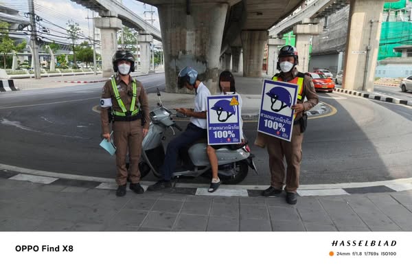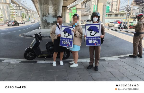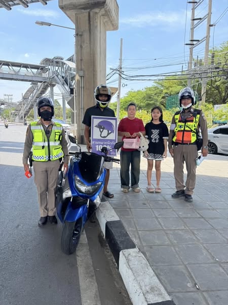 ประชาสัมพันธ์ ผู้ขับขี่ รถ จยย.ให้สวมหมวกนิรภัยทุกครั้ง เมื่อขับขี่ จยย. ตามนโยบายขับขี่ปลอดภัยและประชาสัมพันธ์ให้คนข้ามทางม้าลาย สะพานลอย